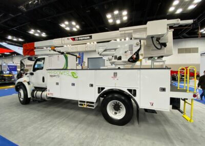 In terms of green innovation for commercial fleets that was new and of interest for the utility industry, Mr. Simons said: “While there was a large shift to EVs this year giving us the opportunity to talk to new start-up companies, what was of most interest was the challenge to balance vehicle range and cost. This included discussions on current battery technology, supply chain issues and the effects it may have in the future. As it relates to the utility industry, there were numerous innovative solutions to help traditional diesel combustion aerial lift trucks be “more-green” with use of supplementary Li-ion battery systems which are similar to our current hybrid trucks but more advanced.”