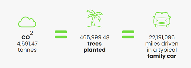 Through a partnership with Climate Wise, we have been offsetting the carbon footprint of each one of our employees in order to bring our entire team to a state of carbon neutrality. To date we are proud to share that we have been able to offset 4,591.47 tonnes of CO2, which is the equivalent to the emissions produced from driving a typical family car 22,191,096 miles.